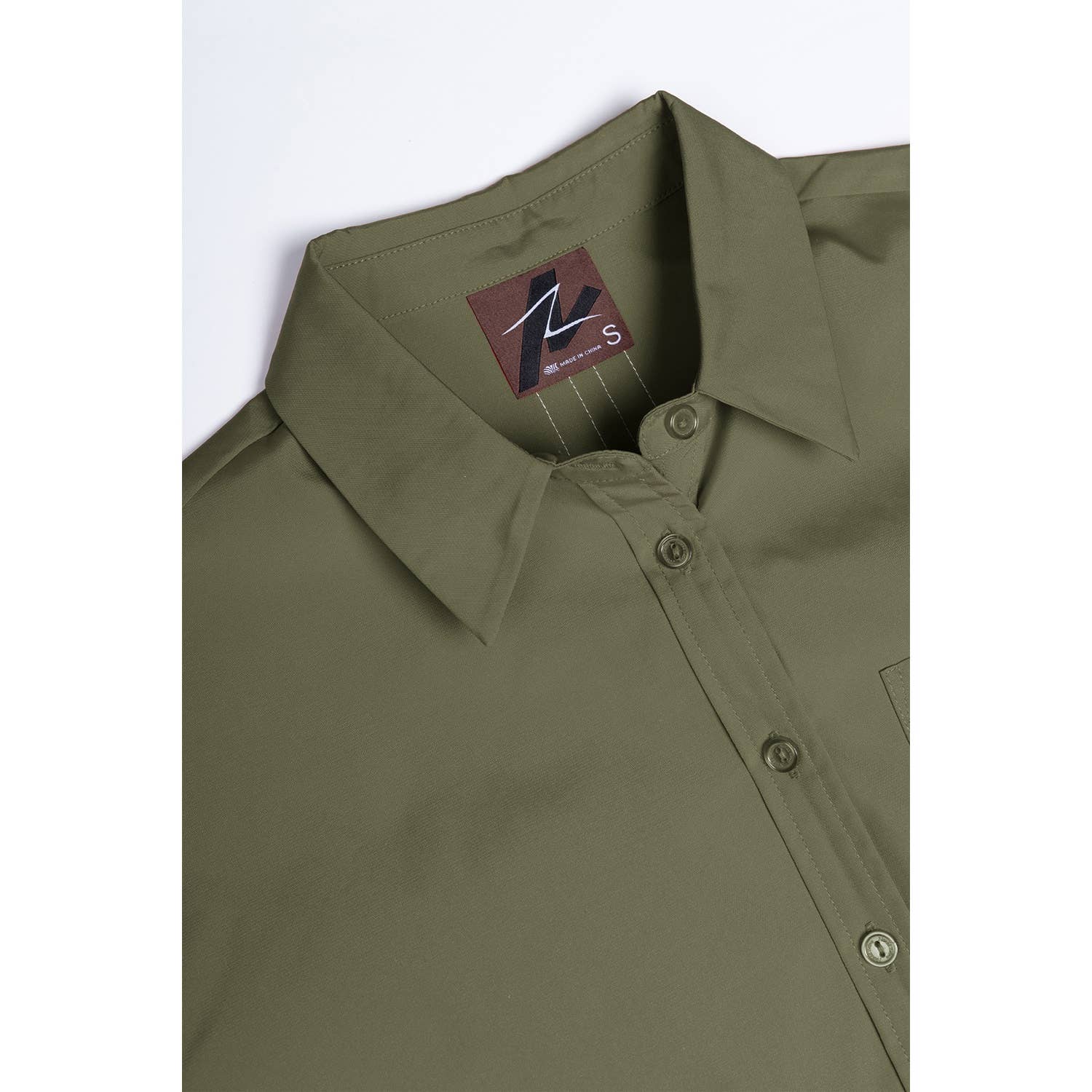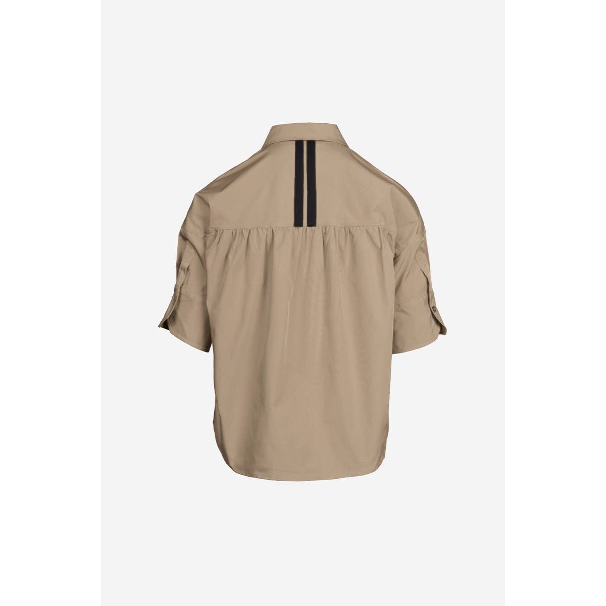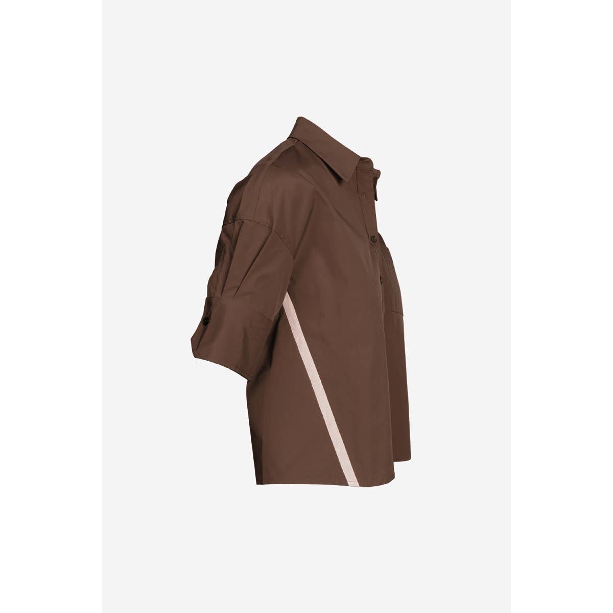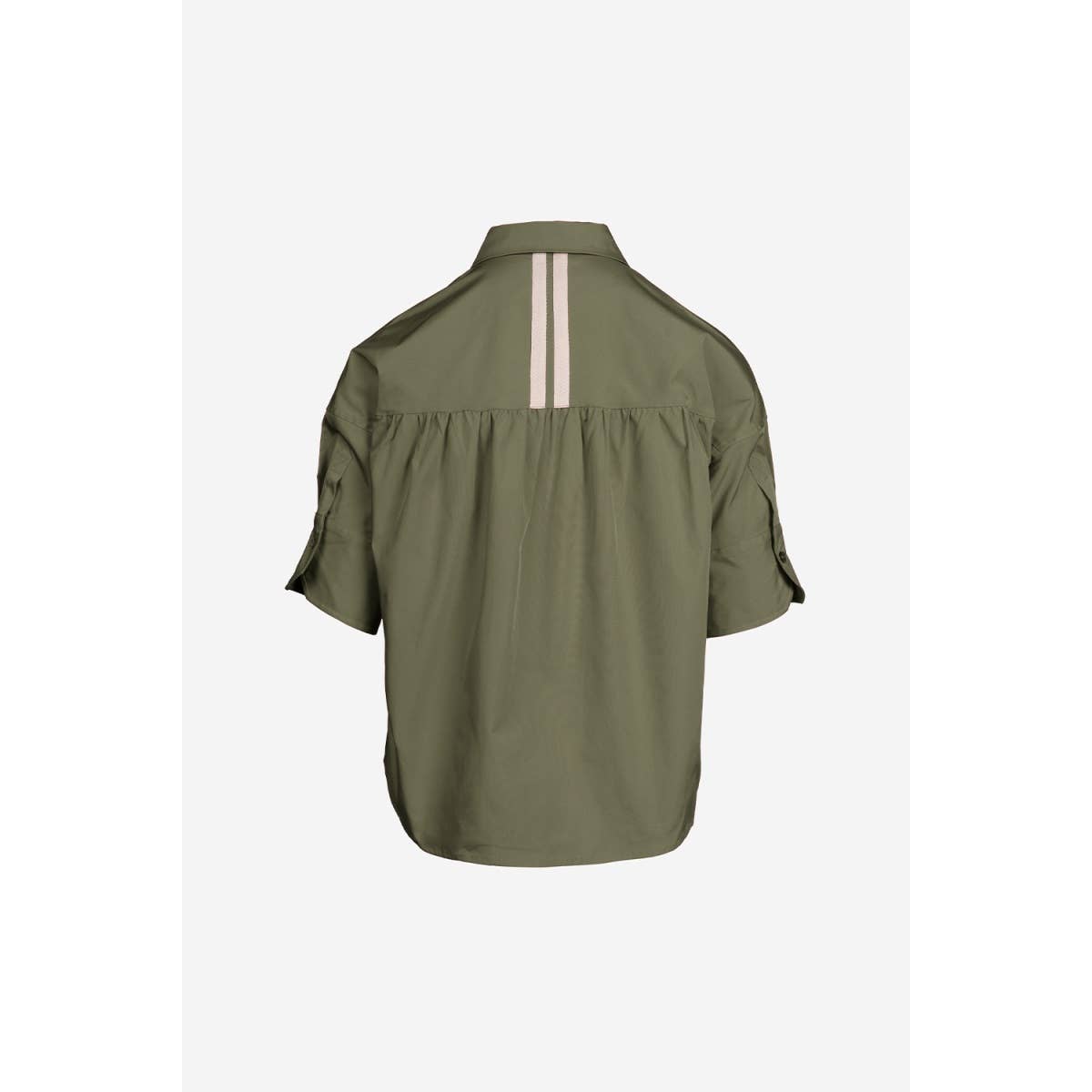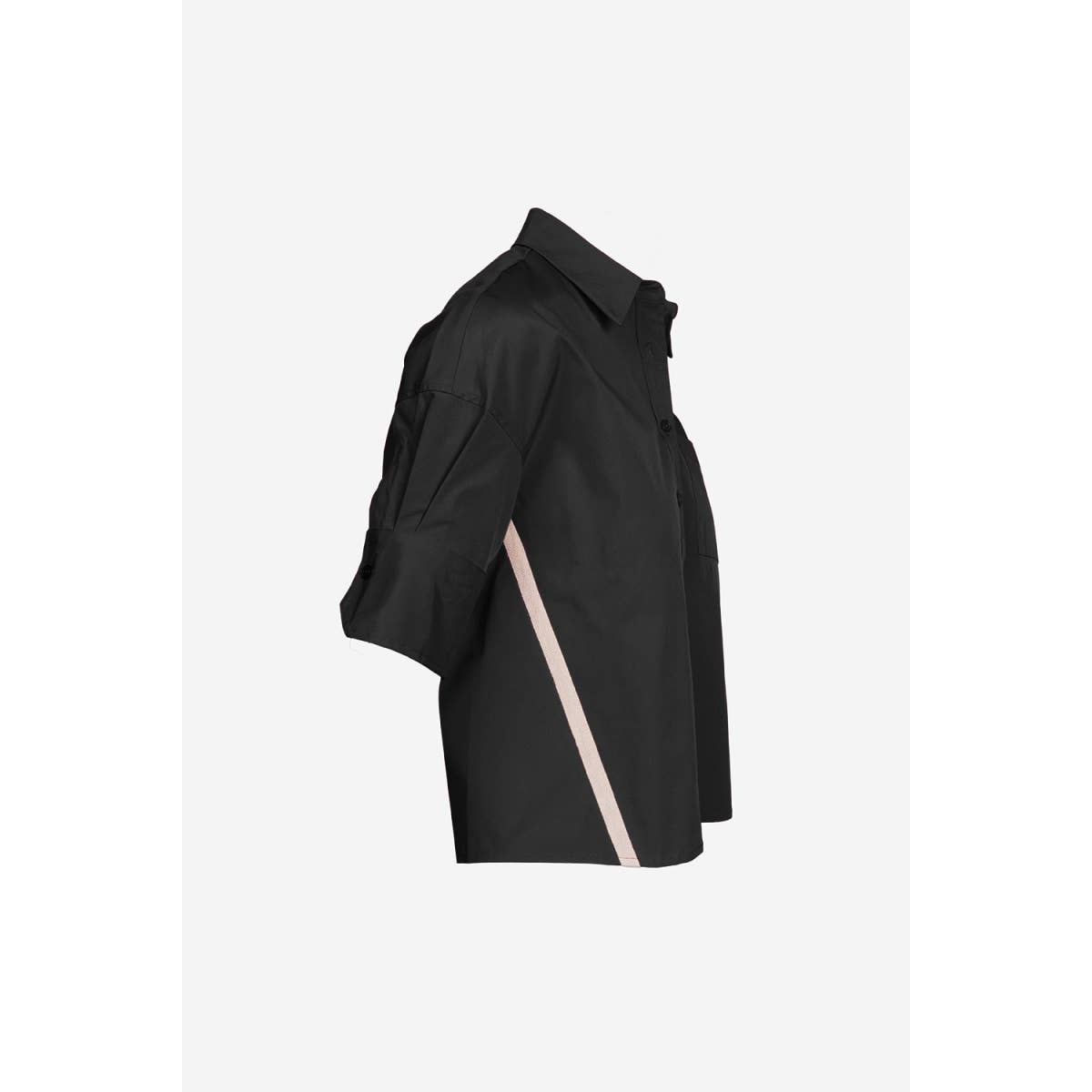 Pleated half sleeves secured by button for subtle volume.