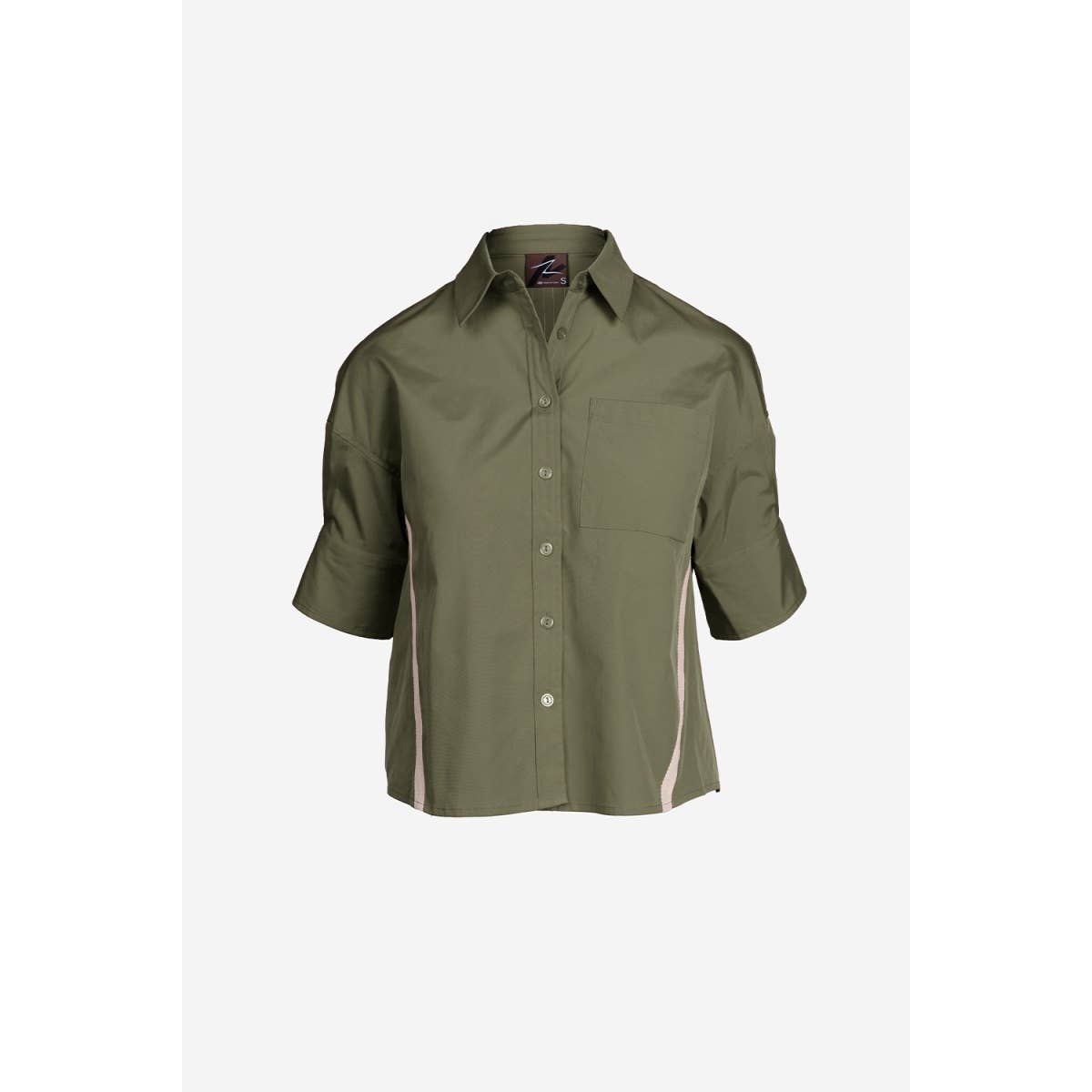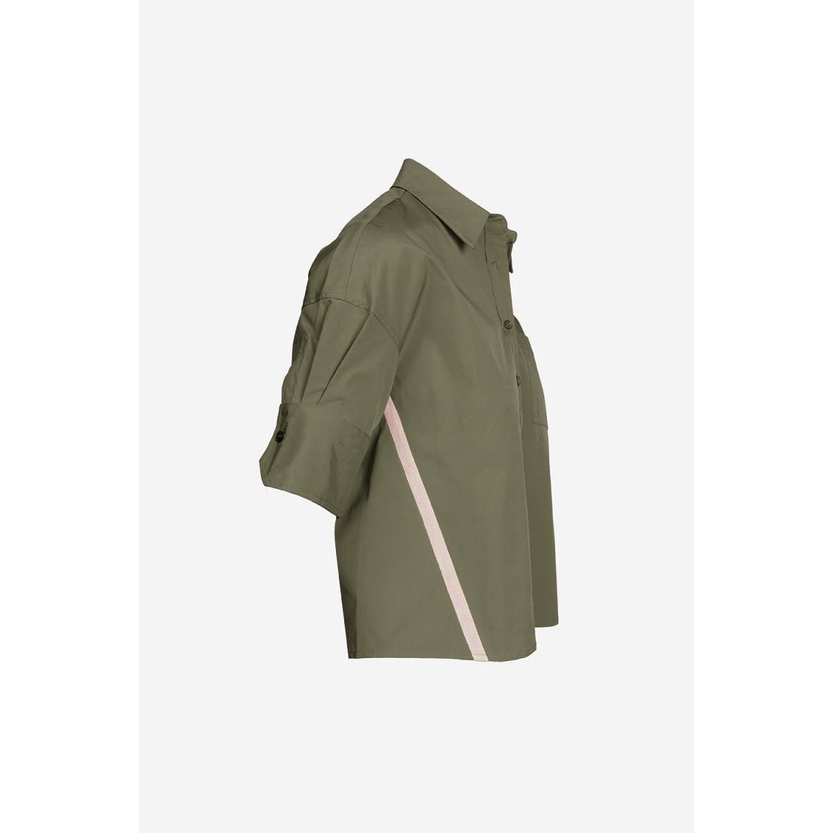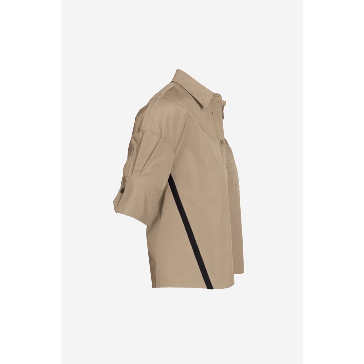 Women's Boxy Half Sleeve Button Up Blouse With Stripe Accents