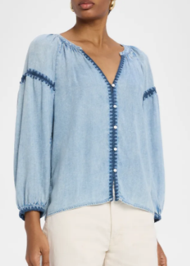 - Rails "Toshi" chambray blouse embroidered with whipstitch trim detailing