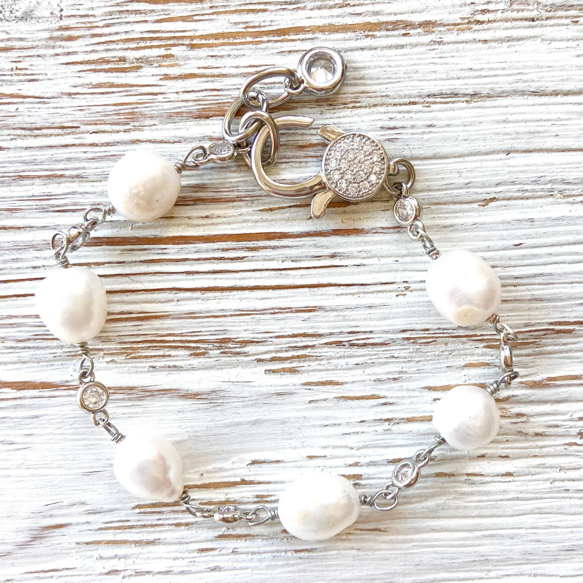 Fresh water pearl bracelet boutique salon jewelry beach sea: White pearl gold chain