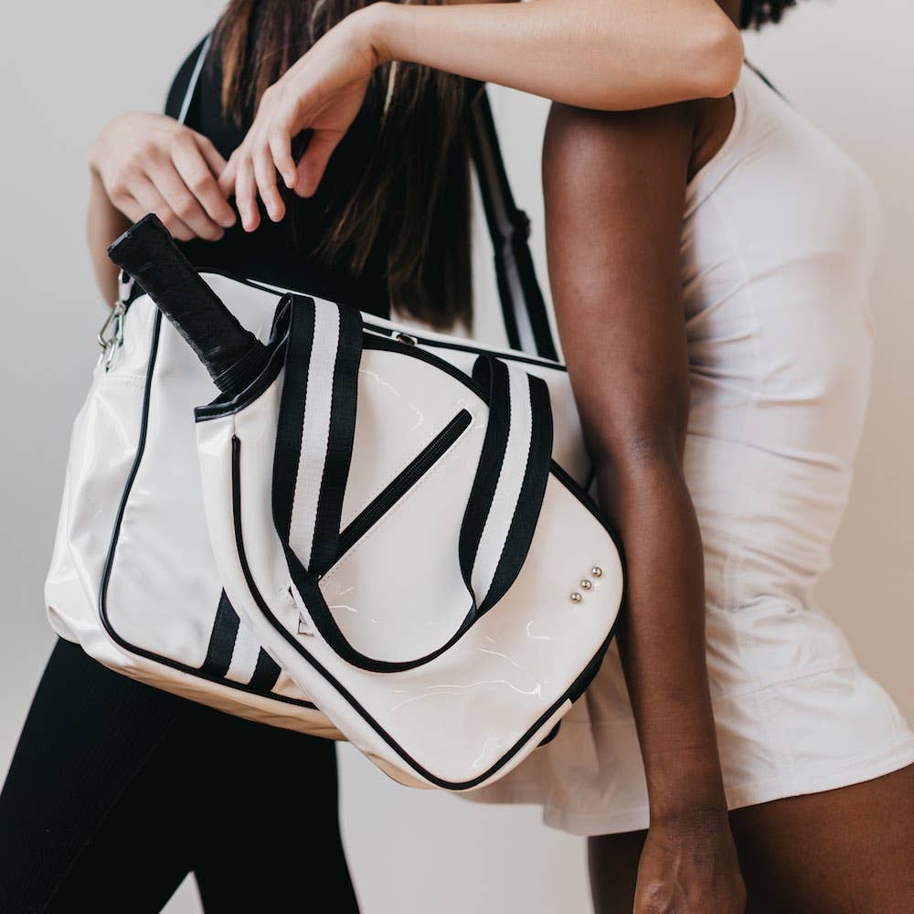 Expanding on our line of Pickleball Bags, our new Poppy is an elevated, patent vegan leather design that will class up your game.