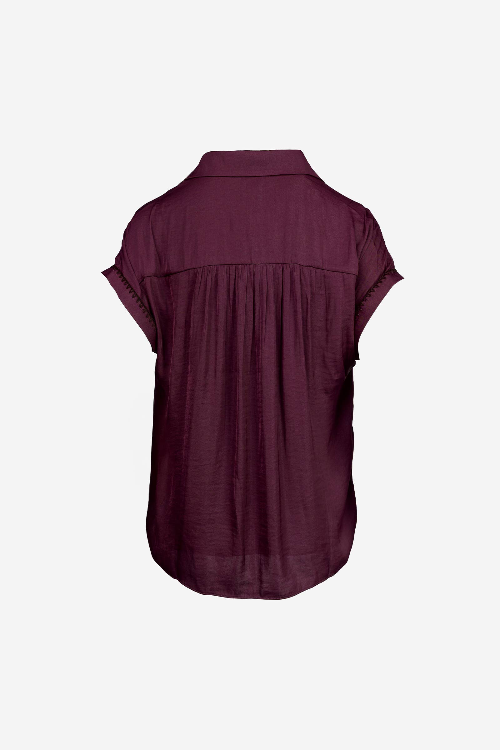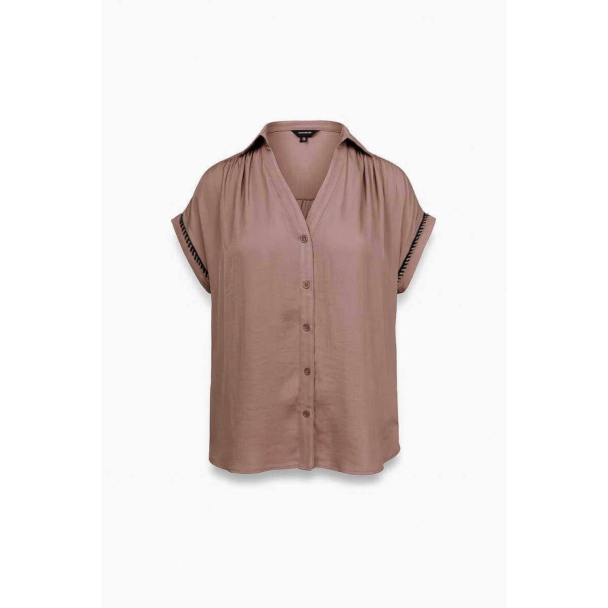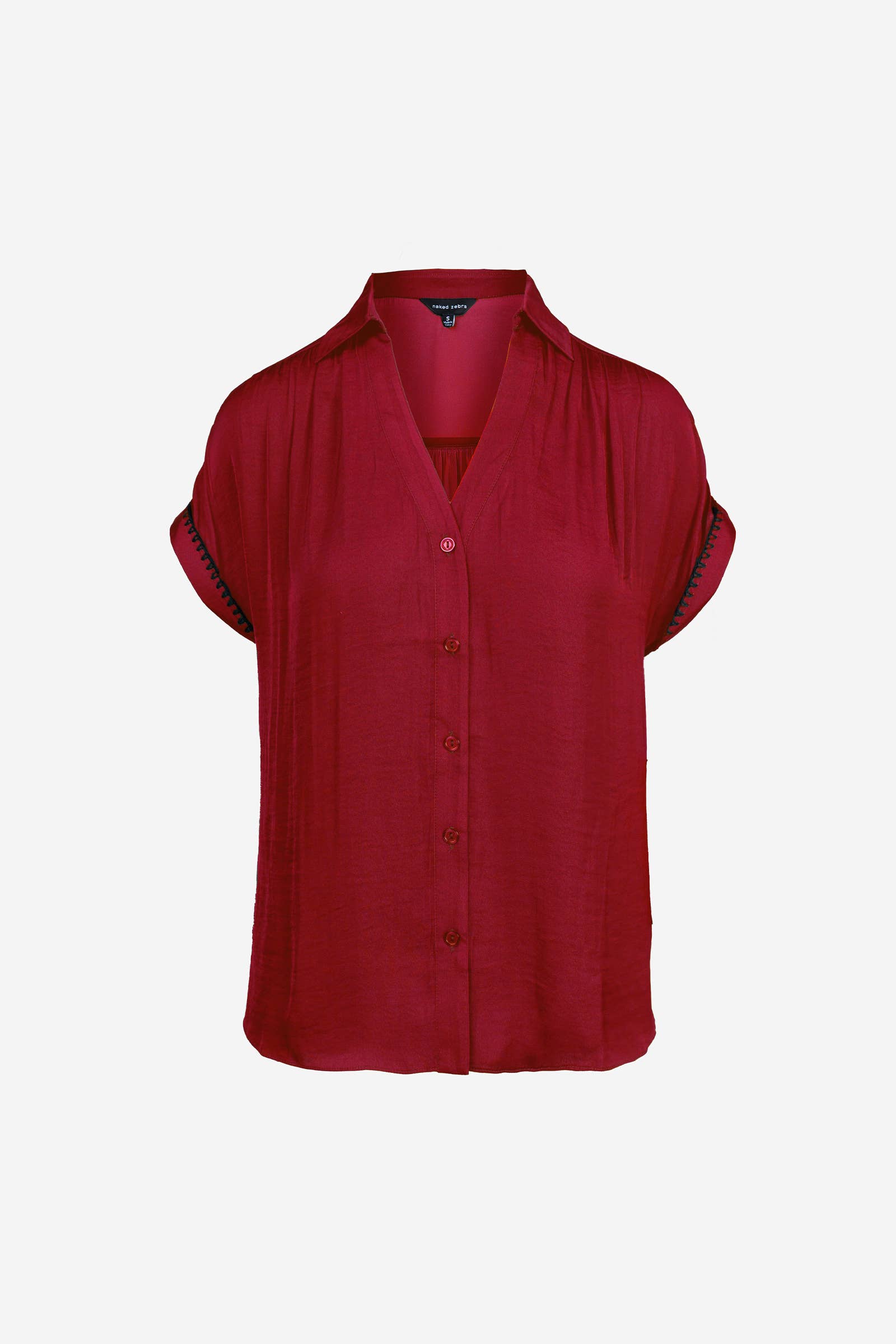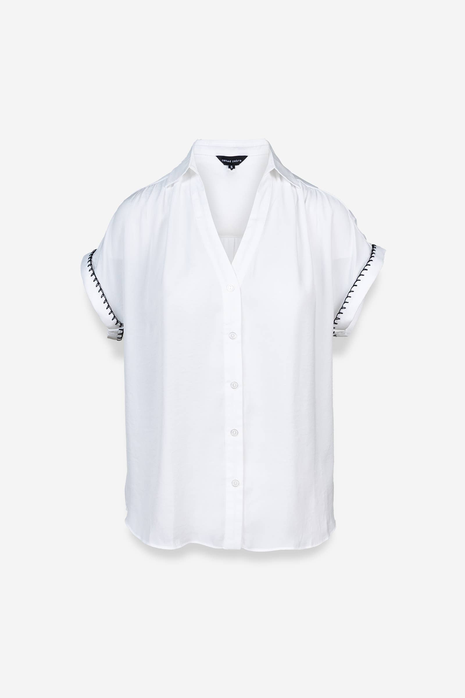 Women's Whipstitch Short Sleeve Button Up Blouse